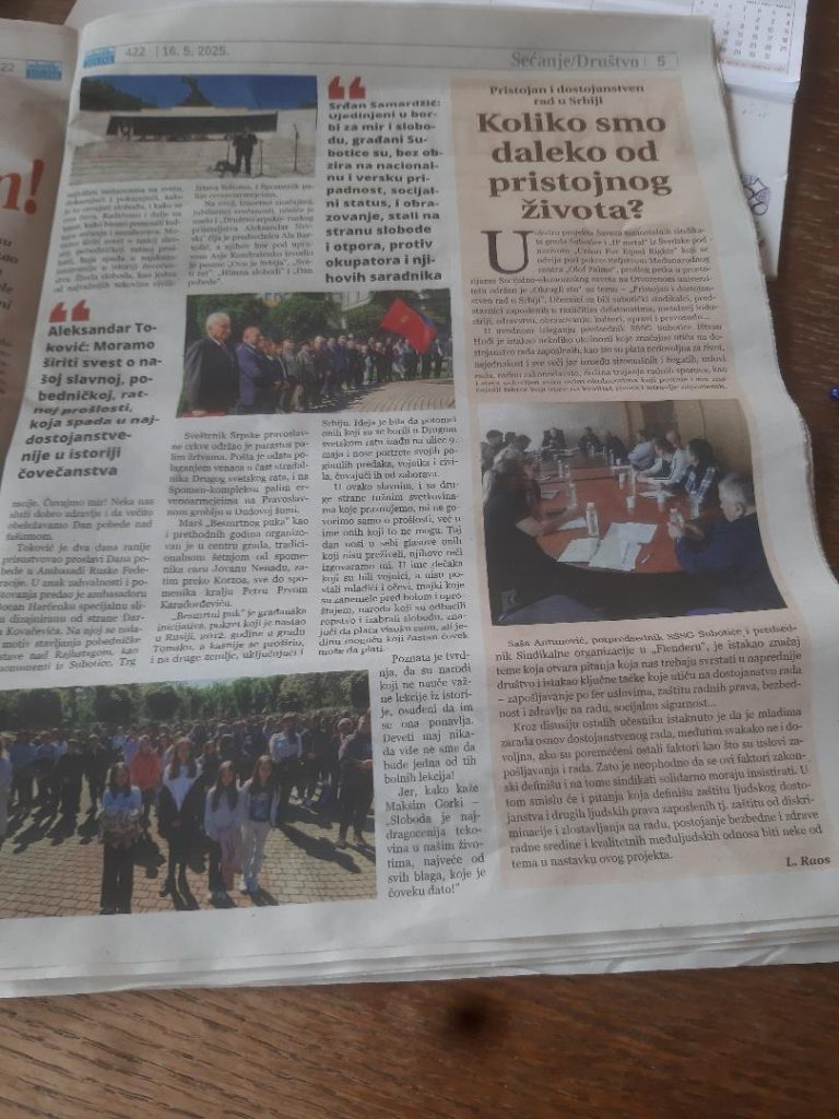 U okviru projekta Saveza samostalnih sindikata grada Subotice i IF metal iz Švedske pod nazivom: “Union For Equal Rights” koji se odvija pod pokroviteljstvom Međunarodnog centra Olof Palme, održan je prošlog petka, 9. maja 2025. godine u prostorijama Socijalno-ekonomskog saveta na Otvorenom univerzitetu Okrugli sto na temu: “Pristojan i dostojanstven rad u Srbiji.”